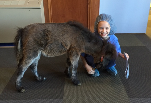 We were not sure she could be saved and have a high quality of life, but because being blind was all she has know from birth, as we watched her, knowing how very small she would be, we had reason to hope she could adapt. We took her to Rood and Riddle Equine Hospital in Lexington, Kentucky. Rood and Riddle is known world wide for offer the highest standard of care possible to equines. They felt she could be saved and have the life quality we expect for our horses.