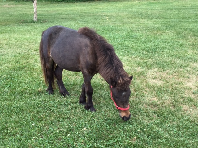 She was adopted, and she lives “THE LIFE” in Kentucky with the Hoppers. She even has her own stall in their basement for when her condition (which is improving as she ages, too) Â of not being able to sweat (Anhidrosis) makes her body temperature too high.